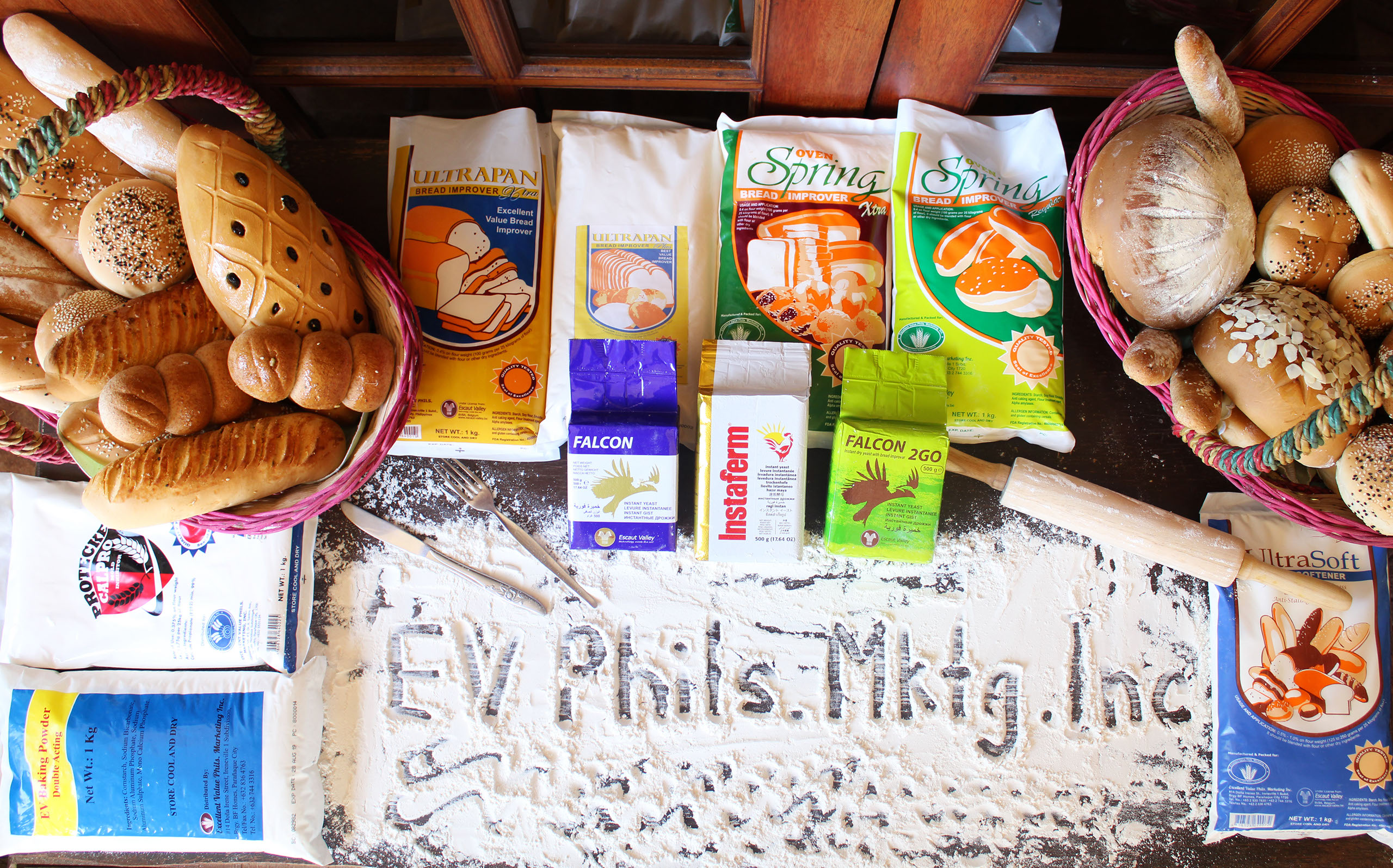 EV Phils. Mktg. Inc. will endeavor to introduce in the Philippine Bakery Ingredients Market , the following brands of Instant Yeast: Falcon Instant Yeast and Falcon 2GO(Instant Yeast with Bread Improver)from China ; Instaferm Instant Yeast from Lallemand GB in the UK and bread improver brands such as Ultrapan Xtra; Ultrapan Plus; Oven Spring Xtra; Oven Spring Plus; and UltraSoft Bread Softener all from Escaut Valley BVBA in Belgium and Supreme and Protecke Anti-Mold from Germany as well as Cake and Pastry Ingredients of the highest quality at affordable prices.